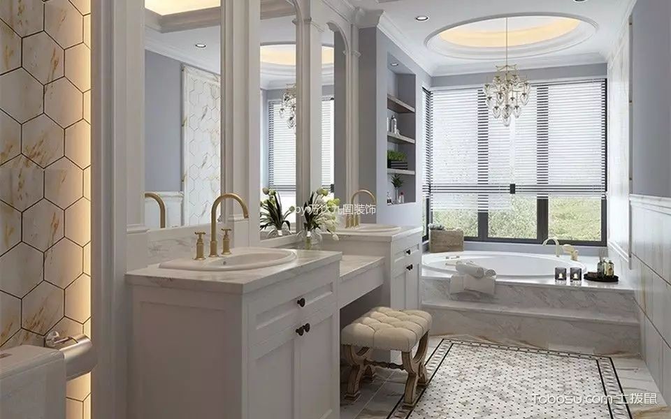 浴室和衛(wèi)生間都選擇遵循西式貴族的裝修設(shè)計和習(xí)慣。 浴室梳妝臺是最典型的西式上流社會特征。 搭配白色,符合現(xiàn)代感廈門美式設(shè)計風(fēng)格裝修,整體看起來非常奢華。